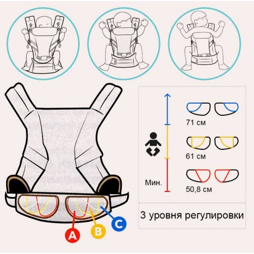 - М'які плечові ремені рівномірно розподіляють вагу дитини для максимального комфорту