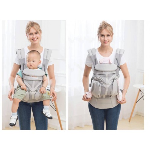 Ерго рюкзак AiMama Ergo Baby Omni 360 сірий призначений для новонароджених від 3,2 кг і має чотири положення для перенесення: обличчям всередину, обличчям назовні, на стегнах і на спині. Кожне положення забезпечує найкращу природну, ергономічну переноску, яка підтримує здоровий розвиток стегон і хребта дитини.