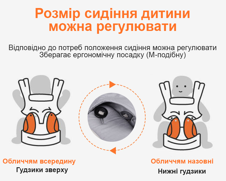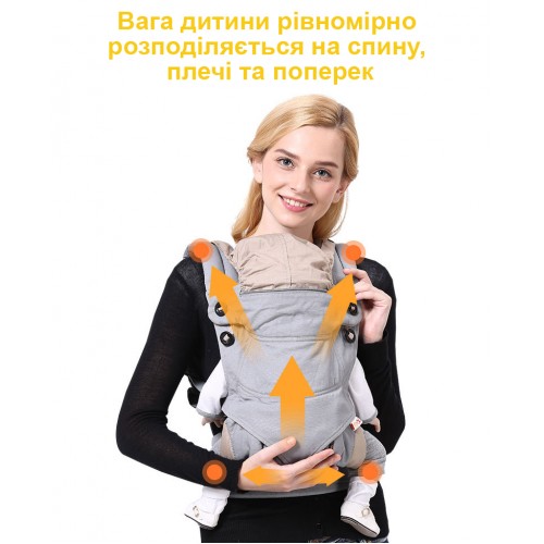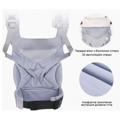 Зручне анатомічне сидіння дозволяє дитині сидіти комфортно та у правильно фізіологічній позі. Воно підтримує дитину незалежно від кого в якій позі батьки нестимуть малюка.