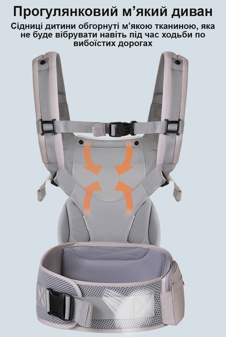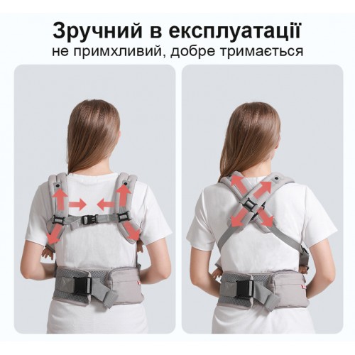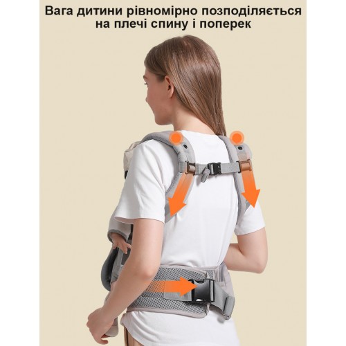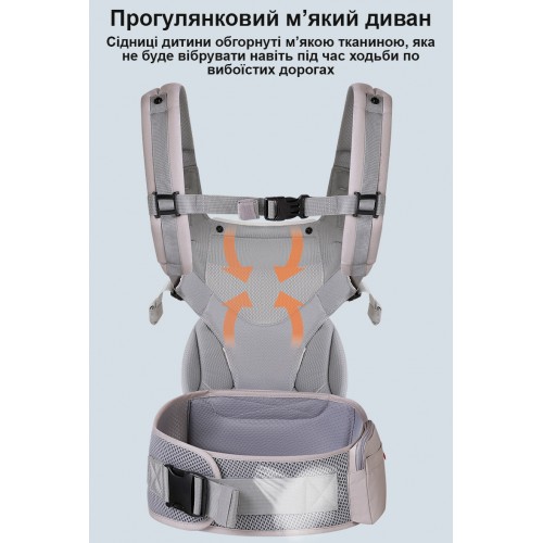 Зручно анатомічне сидіння дозволяє дитині сидіти комфортно та у правильно фізіологічній позі. Воно підтримує дитину незалежно від того у якій позі батько нестиме малюка.