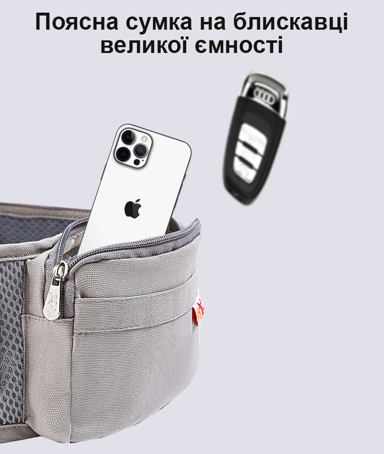 - Ширина переноски регулюється за допомогою язичків на кнопці