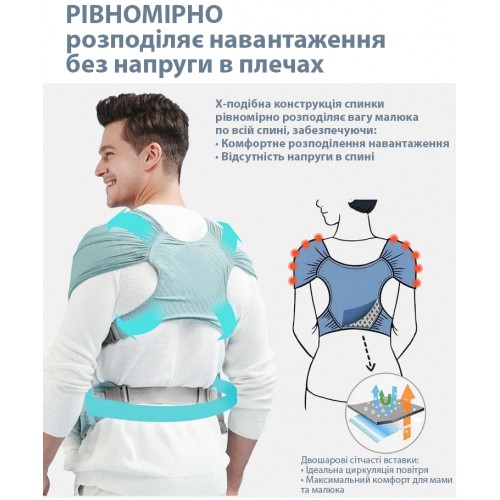 Цей унікальний гібрид слінг-шарфа та ергорюкзака поєднує всі переваги обох видів переносок, виключаючи їхні недоліки. Простота використання, комфорт і безпека - все в одному!