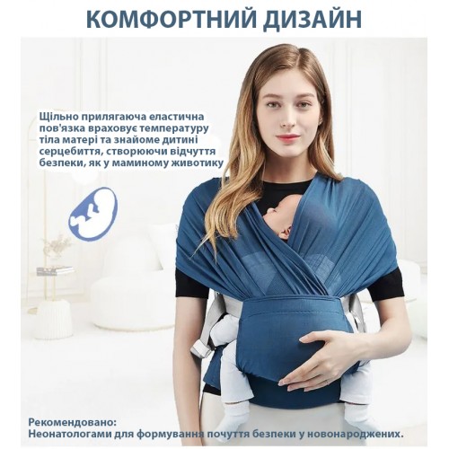 Слінг-шарф + ергорюкзак (0-15 кг) Без намотувань Надягається за 30 сек Синій